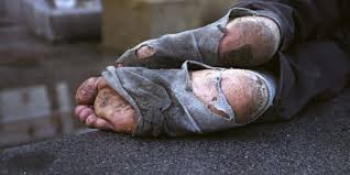 No es para menos, los viejos calzados que trae puesto esconden los torturados pies adornados de innobles ampollas y tortuosas yagas; signos de un largo andar.